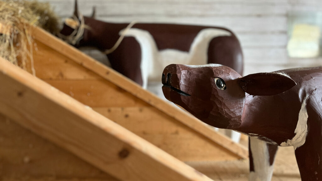 In the children’s barn, younger visitors can try their hand at caring for the animals. Although the animals are made of wood, the experience is popular with both children and adults. This year, the children’s barn is being expanded to include the entire upper floor of the barn – well worth a visit to see the new addition.