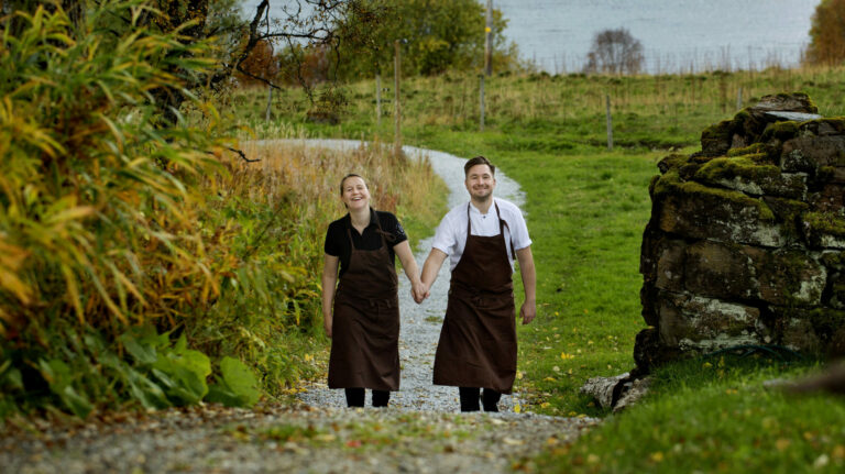 At the far edge of the ocean, on the island of Myken, you’ll find Fiskebruket — a restaurant where dinner is built around ingredients from the sea, local wildlife, and nearby farms. Chefs Stian Floer and Tuva Sætnøe are ready to serve you a memorable meal inspired by their surroundings.