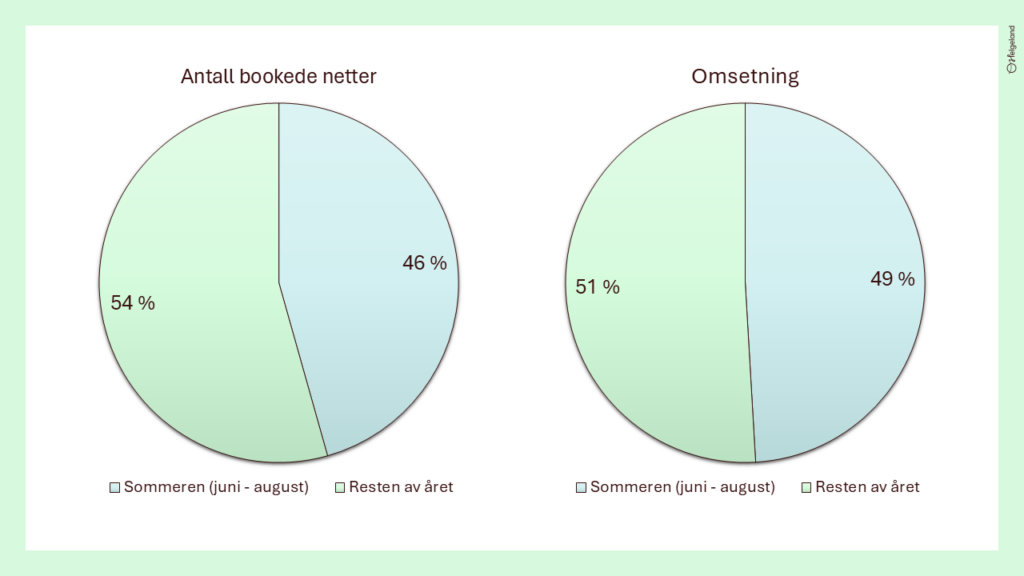 Samlet sett står sommermånedene juni–august for 54 prosent av alle bestilte Airbnb-netter, og 51 prosent av den totale omsetningen.
