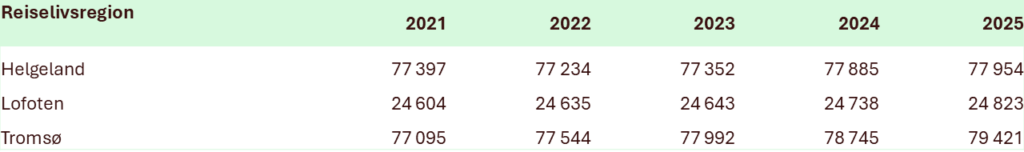 Hvert år oppdaterer NHO Reiseliv rapporten «Nordnorsk Reiselivsstatistikk» som forteller hvordan endringene har vært året som gikk. Mye av innsikten i oversikten under er hentet fra denne, i tillegg til innsikt hentet fra SSB og NordNorsk Reiseliv. Tallene gir innsikt i utviklingen av Airbnb-utleie på Helgeland og i Nord-Norge.