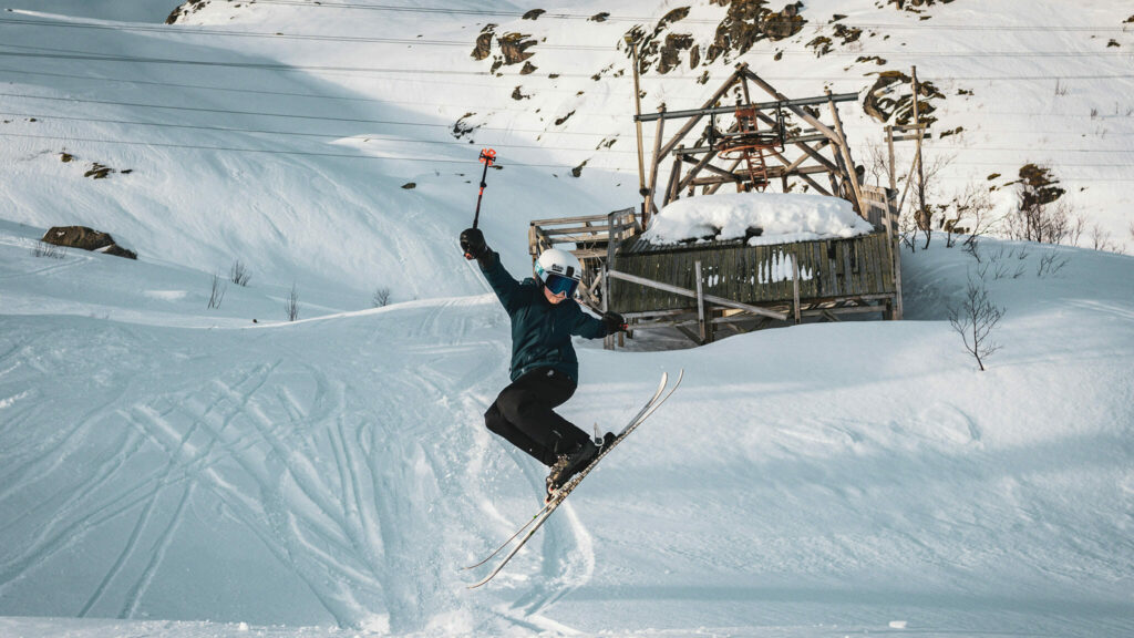 Fra toppen av stolheisen åpner fjellheimen seg mot Svartisen, Glombreen og tindene som ruver over fjorden. Her venter utfordrende løyper og spektakulære muligheter for frikjøring. Når snøen legger seg tung og tørr, er dette et av Nord-Norges mest storslåtte skiområder.