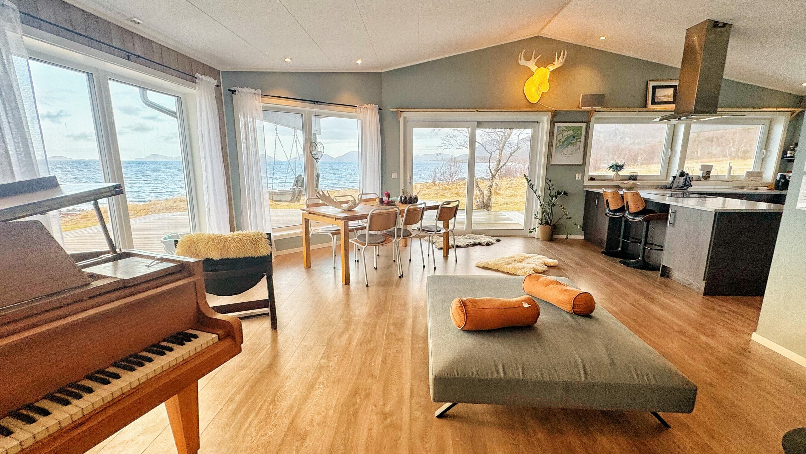 Ved den stille Bindalsfjorden, omkranset av fjell og hav, ligger et moderne feriehus som byr på både ro og rå natur. Her bor du komfortabelt med panoramautsikt til kystlandskapet – og med direkte tilgang til sjøen rett utenfor døra.