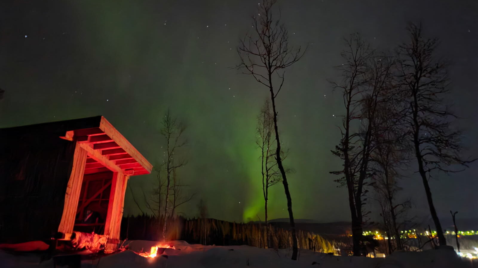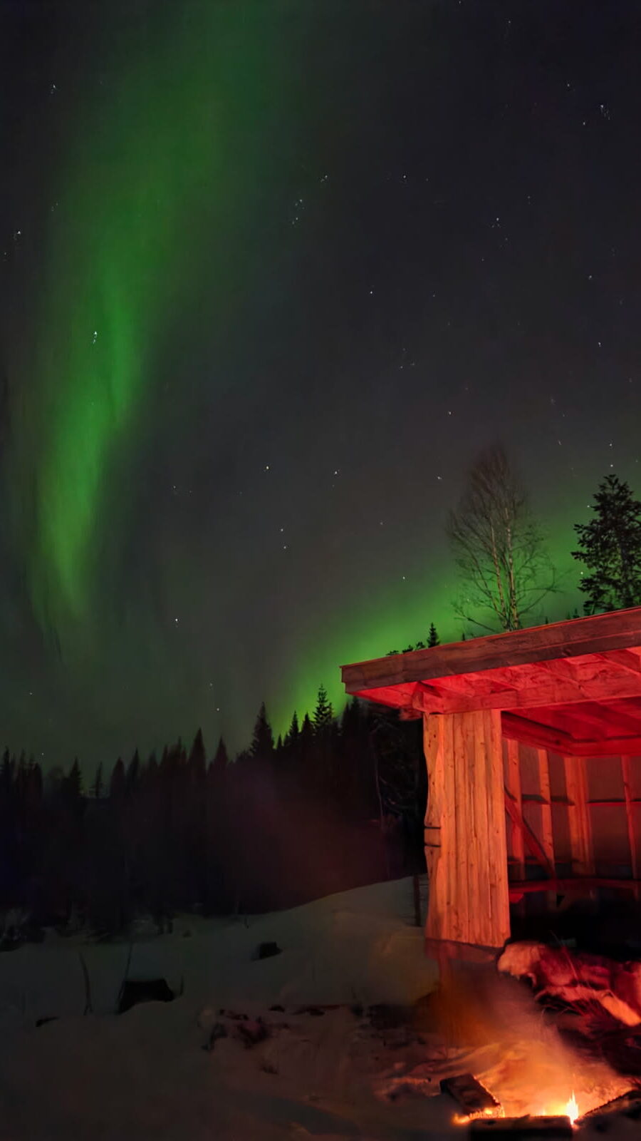 Ved gapahuken finner du reinskinn, pledd, ved og alt som trengs for å fyre opp et bål. Her er du garantert en varm og hyggelig stemning rundt flammene. Dersom vær og forhold ligger til rette, kan du også få se nordlyset danse over fjellriket – men som all nordlysjakt følger det naturens egne premisser.