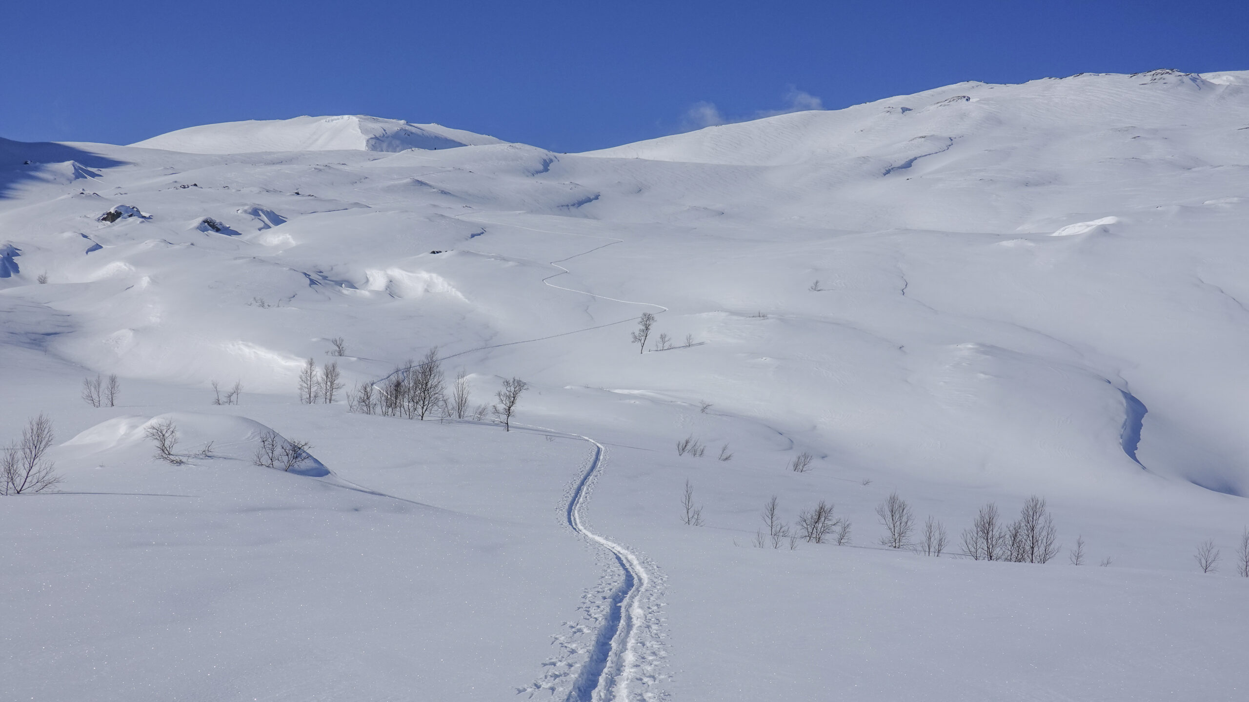 Tidlig på sesongen brøytes ikke veien forbi Tunell 1, slik at du må parkere inne i selve tunellen. Turen starter ved bekkedalen omtrent 500 meter fra tunellåpningen. Herfra følger du ryggen langs nordsiden av bekkedalen rundt 1 km, før du skjærer opp mot og over isbreen på rundt 800 høydemeter. Terrenget går stort sett under 25°, med det er noen brattere partier på nærmere 30° litt før toppen.