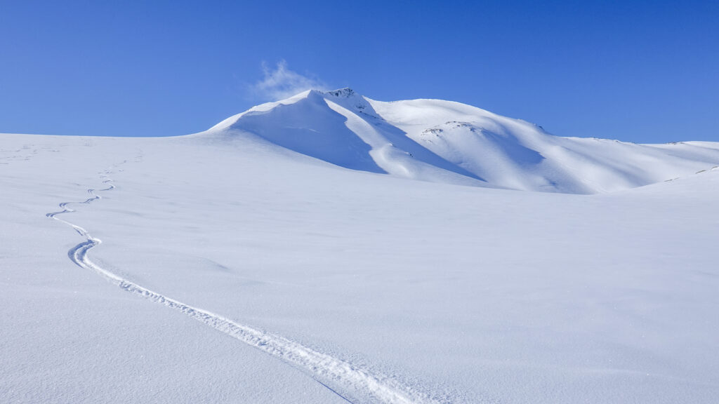 Kitt GrønningsæterMiddagstuva er et av Meløys snillere toppturfjell, som likevel byr på gode muligheter for spennende linjer for de som vil. Turen starter på omtrent 400 moh., så her er det mulig å finne god snø både tidlig og sent i sesongen.